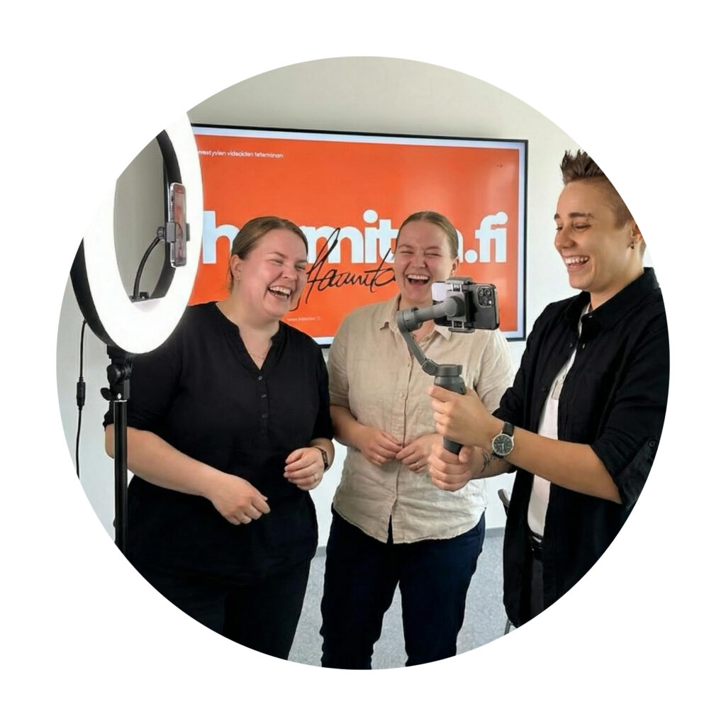 Päivän aikana käydään läpi, miten videoita suunnitellaan ja tehdään konkreettisesti. Perehdymme asioihin, joita ei välttämättä tule ajatelleeksi, kun seuraa kokeneiden somekonkarien tekemiä videoita – mutta valmennuksen jälkeen hoksaa, että mitä suositumpi somettaja – sitä enemmän hän on käyttänyt näitä valmennuksessa esiin tulevia oppeja. Kaikki ei siis olekkaan kiinni pelkästään siitä miten vetovoimainen persoona tai palvelu on kyseessä.